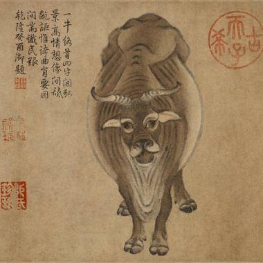 韩滉《五牛图》,中国十大传世名画,是少数几件唐代传世纸绢画作品真迹之一,也是现存最古的纸本中国画,堪称"镇国之宝",描绘了独立成章的五头牛,从不同的角度表现了牛的生活形态和习性,造型生动,形貌真切,表现了唐代画牛所达到的最高水平。韩滉的其他画作大都散失,惟独这幅《五牛图》虽历经劫难,至今仍保留在北京故宫博物院,成为故宫现藏数量极少的唐代绘画杰作之一。难以一睹芳容,为此,北京三希堂特别推出仿真手卷。